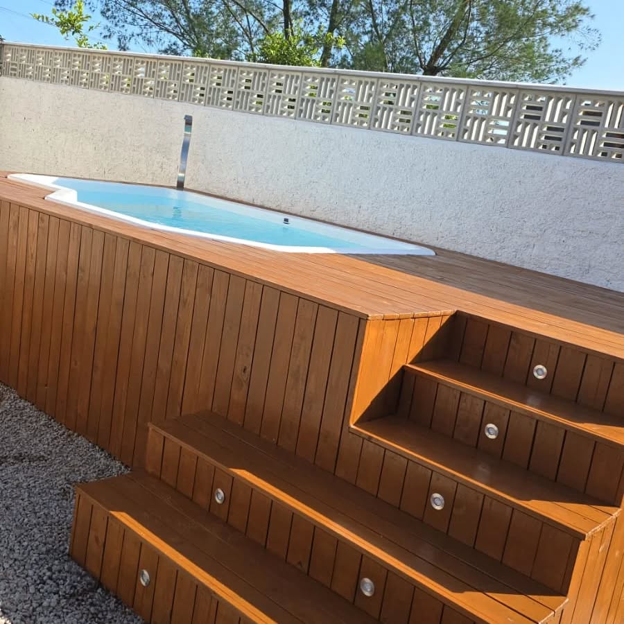 - Projetos Personalizados: Criamos decks sob medida para integrar-se perfeitamente ao espaço da piscina e ao estilo da sua casa.